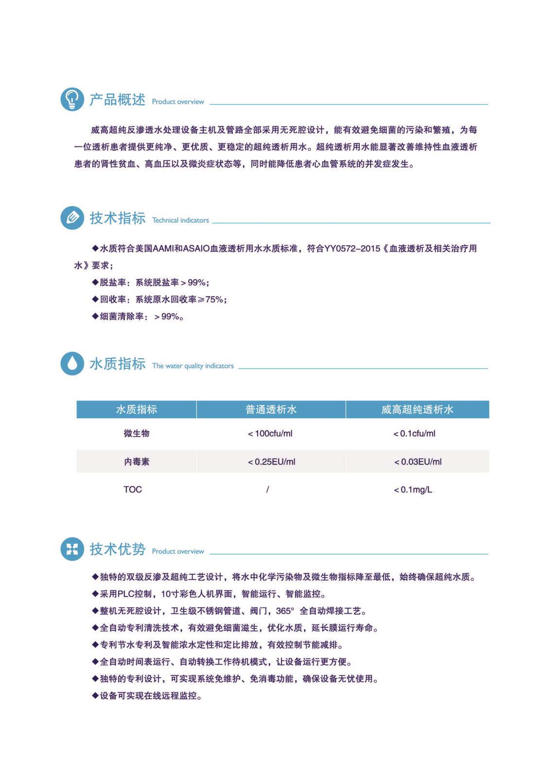1、產(chǎn)水水質(zhì)符合美國AAMI和ASAIO血液透析用水水質(zhì)標準,符合YY0572-2015《血液透析及相關治療用水》要求;